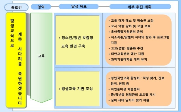 보편적 복지정책 차원에서 교육의 역할 강조... 100세 시대를 맞이해 태어나서 죽을 때까지 필요한 모든 교육 서비스 제공