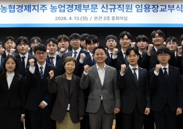 농협중앙회(회장 강호동)에 따르면 2026년 4월13일(월) 농협경제지주(농업경제대표이사 김주양)가 서울특별시 중구 농협중앙회 본관에서 「2026년 상반기 농업경제부문 신규직원 임용장 교부식」을 개최했다.