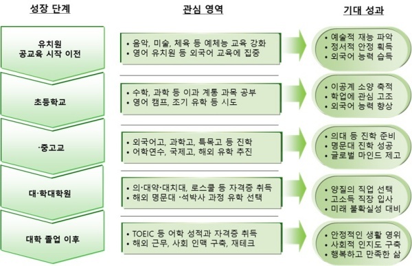▲ 자녀의 성장 단계에 따른 관심 영역과 기대 성과 [출처=iNIS]