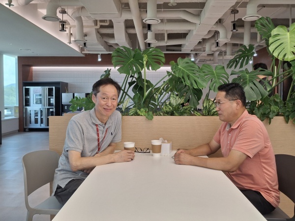 ▲ 현대자동차 품질안전운영팀(현,글로벌안전품질운영팀) 전정환 차량기술사와 인터뷰(왼쪽부터 전정환 차량기술사와 엠아이앤뉴스 발행인 박재희) [출처=iNIS]