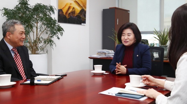 박홍배 전국금융산업노동조합 위원장, 조윤승 KDB산업은행노동조합 위원장, 김두관 국회의원, 김민석 국회의원에 이어 다섯 번째로 만난 사람은 양경숙 더불어민주당 국회의원이다.