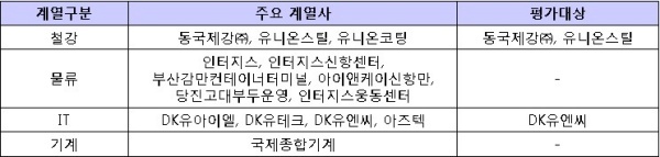 ▲ [표1. 동국제강의 주요 계열사와 평가대상]