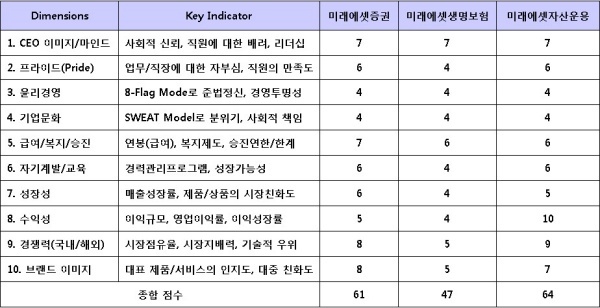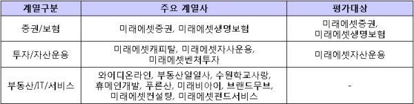 ▲ [표1. 미래에셋의 주요 계열사와 평가대상]