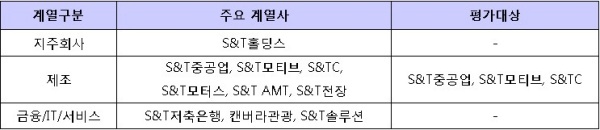 ▲ [표1. S&T의 주요 계열사와 평가대상]
