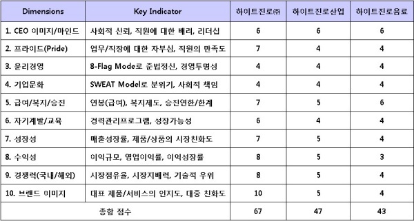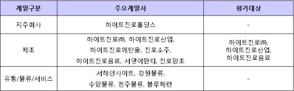 ▲ [표1. 하이트진로의 주요 계열사와 평가대상]