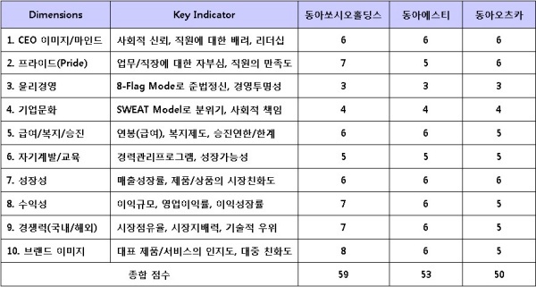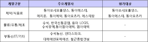 ▲ [표1. 동아쏘시오의 주요 계열사와 평가대상]