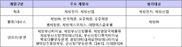 ▲ [표1. 세방의 주요 계열사와 평가대상]
