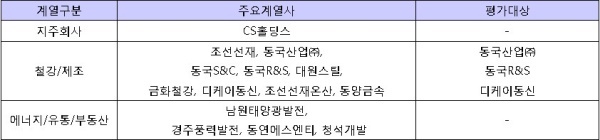 ▲ [표1. 동국산업의 주요 계열사와 평가대상]