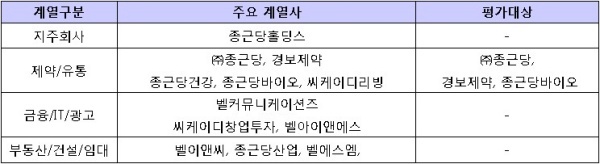 ▲ [표1. 종근당의 주요 계열사와 평가대상]