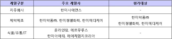▲ [표1. 한미약품의 주요 계열사와 평가대상]