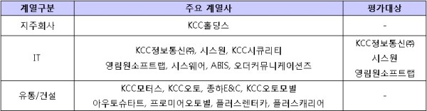 ▲ [표1. KCC정보통신의 주요 계열사와 평가대상]