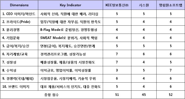 ▲ [표2. 평가대상기업의 점수비교]