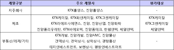 ▲ [표1. KPX의 주요 계열사와 평가대상]