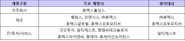 ▲ [표1. 휴맥스의 주요 계열사와 평가대상]