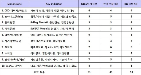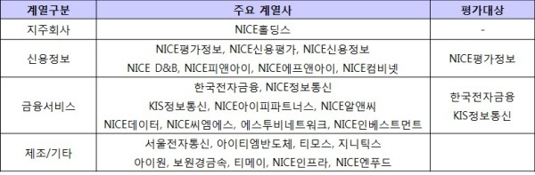 ▲ [표1. 나이스의 주요 계열사와 평가대상]