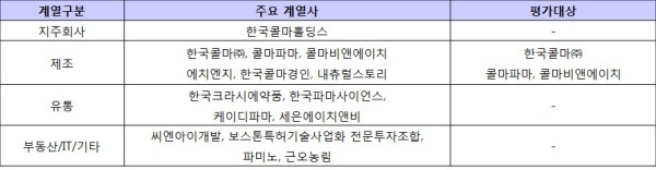 ▲ [표1. 한국콜마의 주요 계열사와 평가대상]