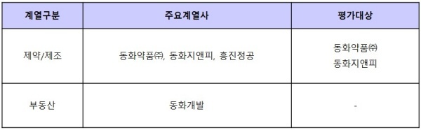 ▲ [표1. 동화약품의 주요 계열사와 평가대상]