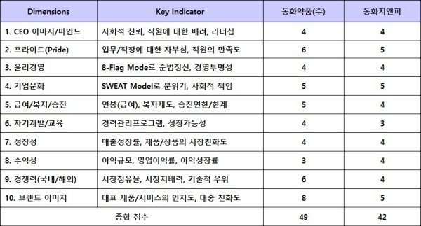 ▲ [표2. 평가대상기업의 점수비교]