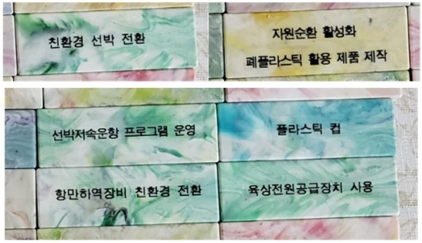 예를 들어 젠가 블록에는 '선박배출 폐플라스틱 회수 및 재활용', '자원순환 활성화', '선박저속운항프로그램 운영 및 참여', '친환경 선박 전환'과와 같은 메시지가 포함된다.