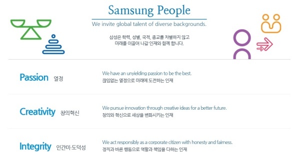 ▲삼성의 인재상(출처 : 홈페이지)