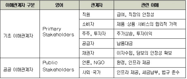 ▲기업의 이해관계자과 이해 차이(출처 : iNIS)