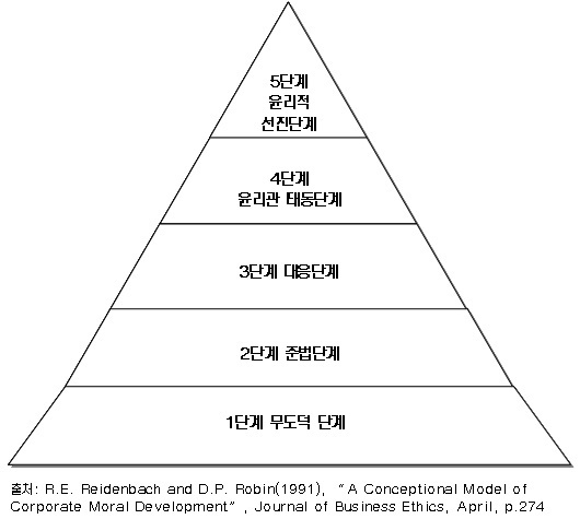 미국 경영전문가 D.P. Robin은 기업의 윤리경영을 아래와 같이 5단계로 구분했다.