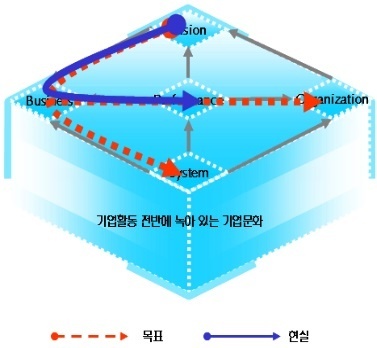 조직과 사업은 DNA간 유기적 조화도가 높은 편이지만 비전, 성과, 시스템은 유기적 조화도가 평균 이하다. 시스템의 유기적 조화도는 매우 낮아 우려를 낳고 있다.