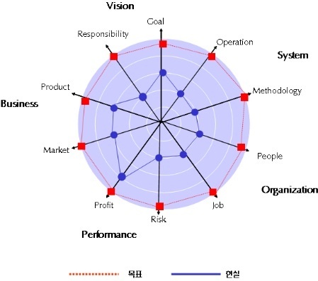 비전의 목표설정은 문제가 없고, 사회적 책임은 기업의 생존하기 위해 현재의 수준을 받아들여서는 안된다. 성과 중 이익은 현재의 수준을 유지할 수 있는 전략을 세우면 충분하고, 위험관리는 무시할 수 없는 위험군에 속한다.