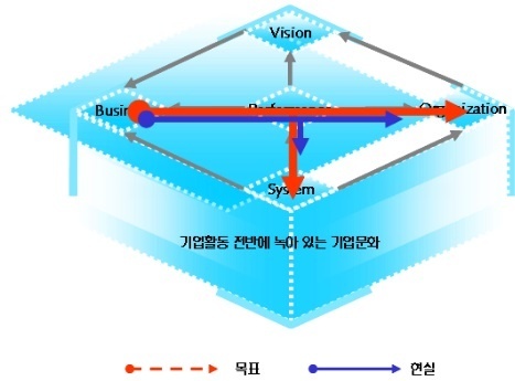 최근의 변화노력은 매우 긍정적이기는 하지만 변화의 효과가 조직 구성원 전체가 체감할 수 있도록 가시적인 성과를 내야 한다. 기업문화 혁신은 외부요인보다는 내부의 경영진과 임직원의 합심(consensus)만으로 달성이 가능하다는 점을 강조한다.
