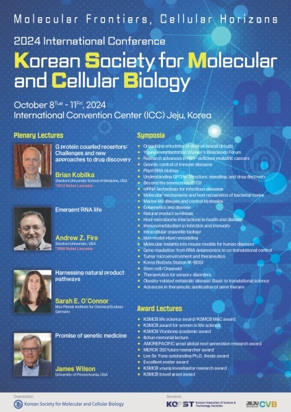 또한 KSMCB 생명과학상 수상자 송현규 교수, KSMCB 여성생명과학자상 수상자 김혜영 교수, KSMCB 운봉학술상 수상자 이호영 교수 등 여러 학회 주관 시상자의 수상 강연이 이뤄진다.
