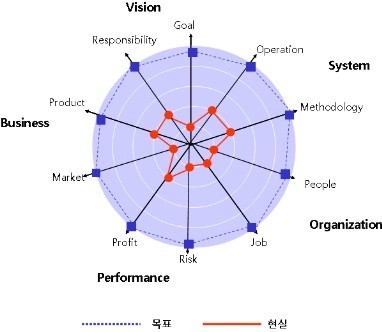 조직과 성과는 전략적으로 비전보다는 중요도가 떨어지지만 유기적 조화도가 낮은 편이다. 시스템은 대부분이 관리 가능한 위험군에 속하지만 유기적 조화도가 매우 낮다. 대림의 업무 특성에 적합한 시스템을 개발해 활용하고 있지 못하고 있다.