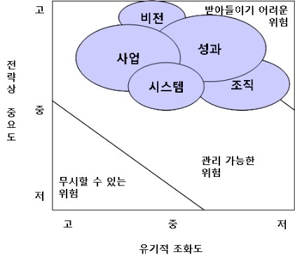 대부분의 대기업은 최소한 1개 이상의 DAN가 무시할 수 있는 위험영역에 포함돼 기업문화 혁신전략을 수립하기 쉬운데, 한라의 경우 깊은 고민을 하지 않으면 혁신도 어렵다. 관리 가능한 위험영역에 포함된 사업과 시스템도 전략적으로 중요함에도 불구하고 유기적 조화도는 ‘중’으로 높지 않다.