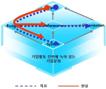 기업문화를 혁신하기 위해서 가장 우선적으로 고려해야 하는 DNA는 사업과 성과이고, 다음으로 조직과 시스템이다.