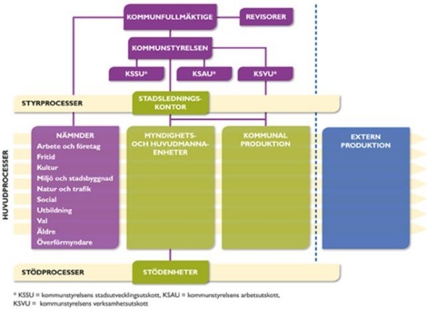 스웨덴에는 우리의 광역자치단체에 해당하는 도가 모두 21개가 있는데, 도는 병원, 도로 등 사회기반시설을 조성하는 사업을 위주로 하고, 복지나 교육은 코뮨이 자율권을 가지고 집행하고 있다. 290개의 코뮨 마다 의회가 있고 시 이사회가 있다.