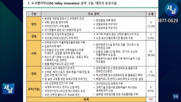 지난 9월 12일 새날 유튜브 방송에서는 2020년 21대 국회의원 선거에서 당선된 대전시 유성구을 이상민 의원이 제시한 선거공약을 평가했다.
