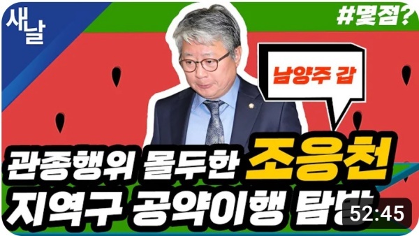 ▲ 경기도 남양주시갑 조응천 의원 공약 평가 인터로 [출처=새날 유튜브 방송]