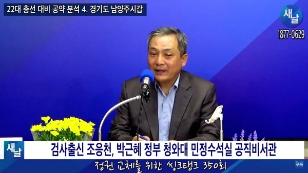 지난 9월 26일(화요일) 새날 유튜브 방송에서는 2020년 21대 국회의원 선거에서 당선된 경기도 남양주시갑 조응천 의원이 제시한 선거공약을 평가했다.
