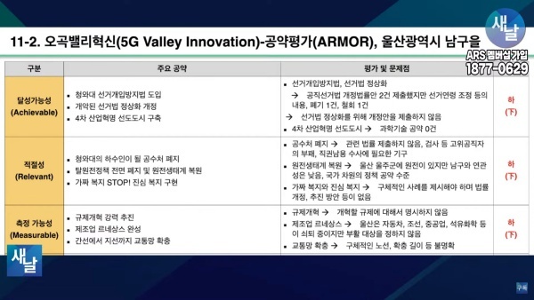 평가를 위한 방송에는 푸른나무, 이상구 원장, 민진규 소장(국가정보전략연구소) 등이 출연했다. 평가 방법은 국가정보전략연구소(국정연, iNIS)가 개발한 ‘오곡(五穀)밸리혁신(5G Valley Innovation)-선거공약’ 평가 모델을 적용했다.