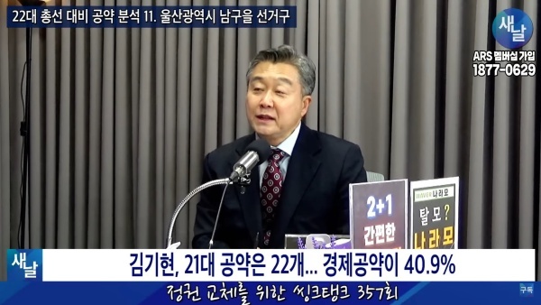 새날 “정권 교체를 위한 씽크탱크” 357회···22대 총선 대비 공약 분석 11. 울산광역시 남구을 선거구