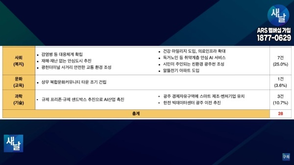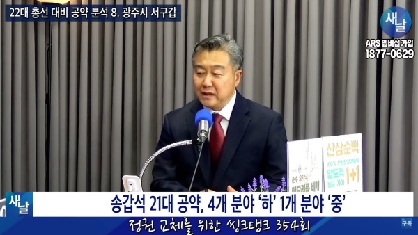 새날 “정권 교체를 위한 씽크탱크” 354회···22대 총선 대비 공약 분석 8. 광주시 서구갑