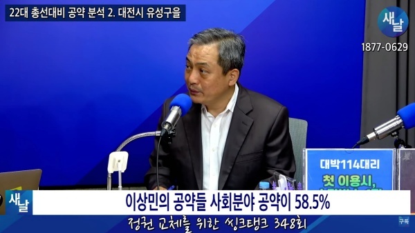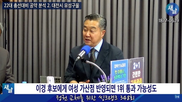 새날 “정권 교체를 위한 씽크탱크” 348회···22대 총선대비 공약 분석 2. 대전시 유성구을