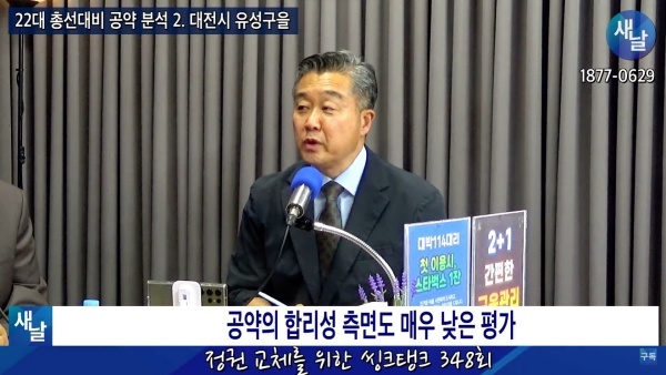 새날 “정권 교체를 위한 씽크탱크” 348회···22대 총선대비 공약 분석 2. 대전시 유성구을
