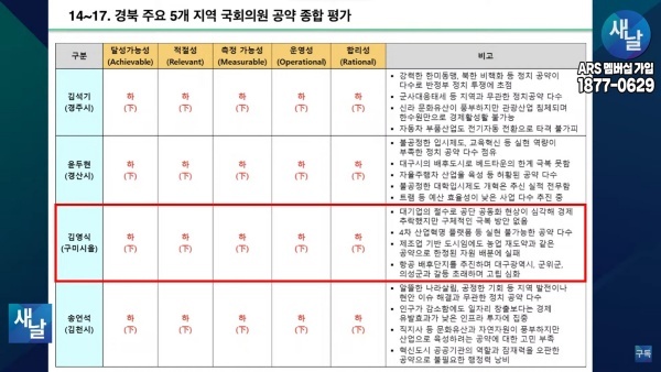 ▲ 경북지역 4개지역 국회의원 공약평가 인터로[출처=새날 유튜브]