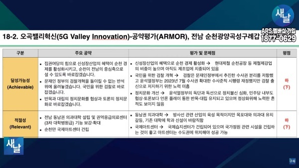 [국회의원 공약 평가] ⑱새날 방송, 전라남도 순천시·광양시·곡성군·구례군갑 소병철 의원···달성가능성 등 5개 부문 모두 하(下)