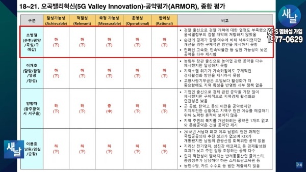 평가를 위한 방송에는 푸른나무, 이상구 원장, 민진규 소장(국가정보전략연구소) 등이 출연했다. 평가 방법은 국가정보전략연구소(국정연, iNIS)가 개발한 ‘오곡(五穀)밸리혁신(5G Valley Innovation)-선거공약’ 평가 모델을 적용했다.