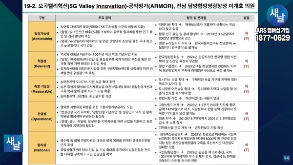 평가를 위한 방송에는 푸른나무, 이상구 원장, 민진규 소장(국가정보전략연구소) 등이 출연했다. 평가 방법은 국가정보전략연구소(국정연, iNIS)가 개발한 ‘오곡(五穀)밸리혁신(5G Valley Innovation)-선거공약’ 평가 모델을 적용했다.