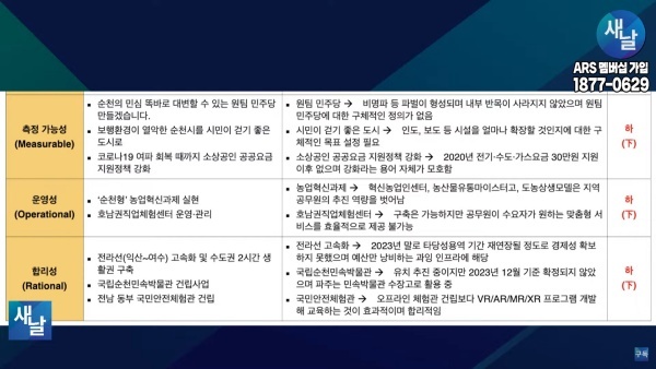 [국회의원 공약 평가] (재공지) ⑱새날 방송, 전라남도 순천시·광양시·곡성군·구례군갑 소병철 의원···달성가능성 등 5개 부문 모두 하(下)