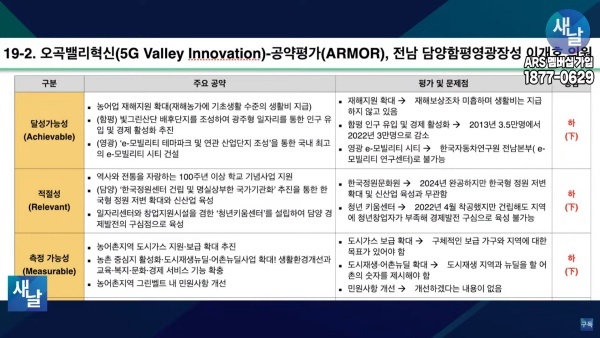 [국회의원 공약 평가] (재공지) ⑲새날 방송, 전라남도 담양군·함평군·영광군·장성군, 이개호 의원···달성가능성 등 5개 부문 모두 하(下)