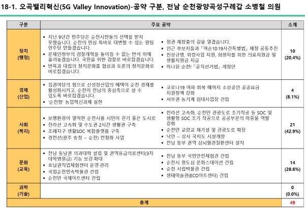▲ 전라남도 순천시·광양시·곡성군·구례군갑 소병철 의원 공약(정치/경제/사회/문화/과학(기술)) [출처=국가정보전략연구소(iNIS)]