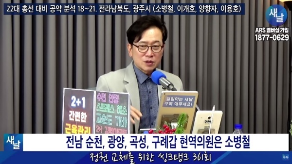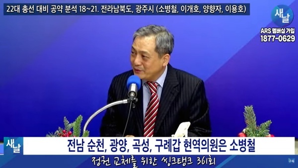 12월12일(화요일) 새날 유튜브 방송은 2020년 21대 국회의원 선거에서 당선된 전라남도 순천시·광양시·곡성군·구례군갑 소병철 의원이 제시한 선거공약을 평가했다.